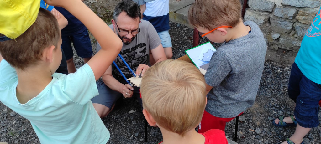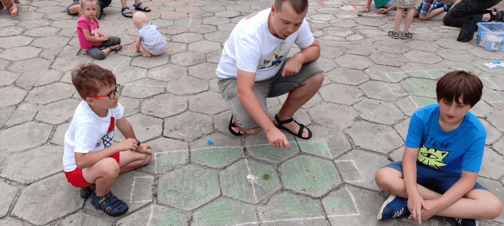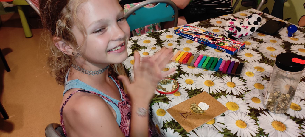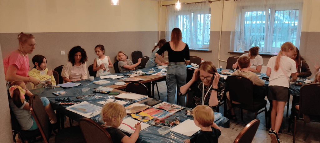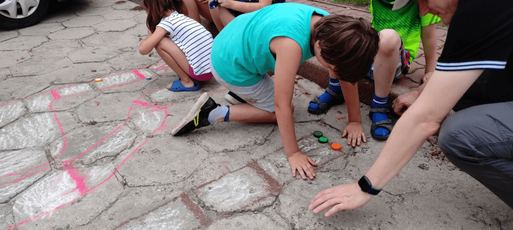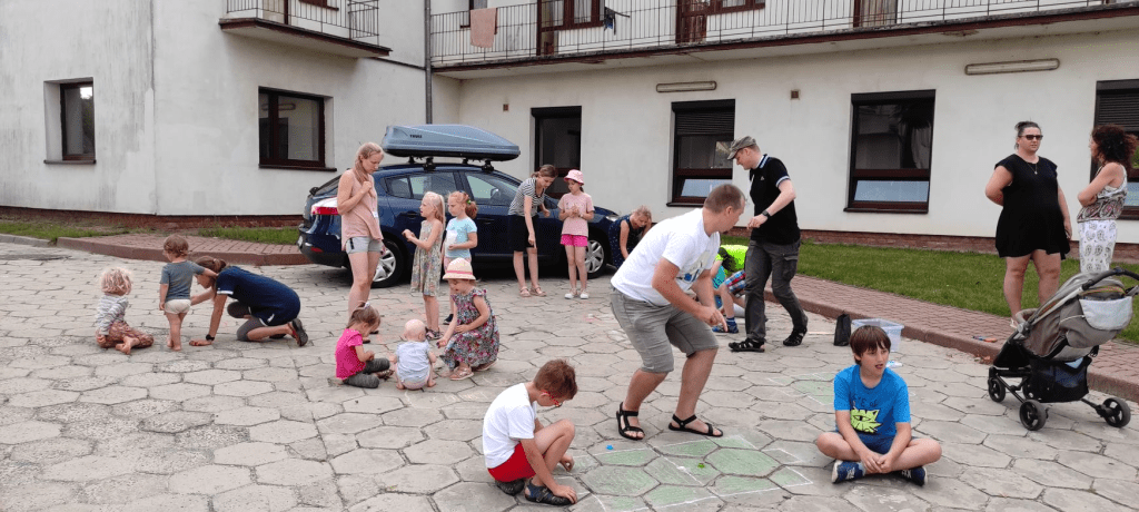 Rozpoczęliśmy drugą część warsztatów. Zakończyły się warsztaty przyrodnicze, podczas których dzieci wykonywały zielniki, napary z ziół, obrazki z suszonych kwiatów i ozdabiały torby. Serdecznie dziękujemy Joli, która poprowadziła te warsztaty! W drugiej części Monika i Robert zaprosili dzieci do warsztatów ruchowych – czyli zabaw z dzieciństwa rodziców.