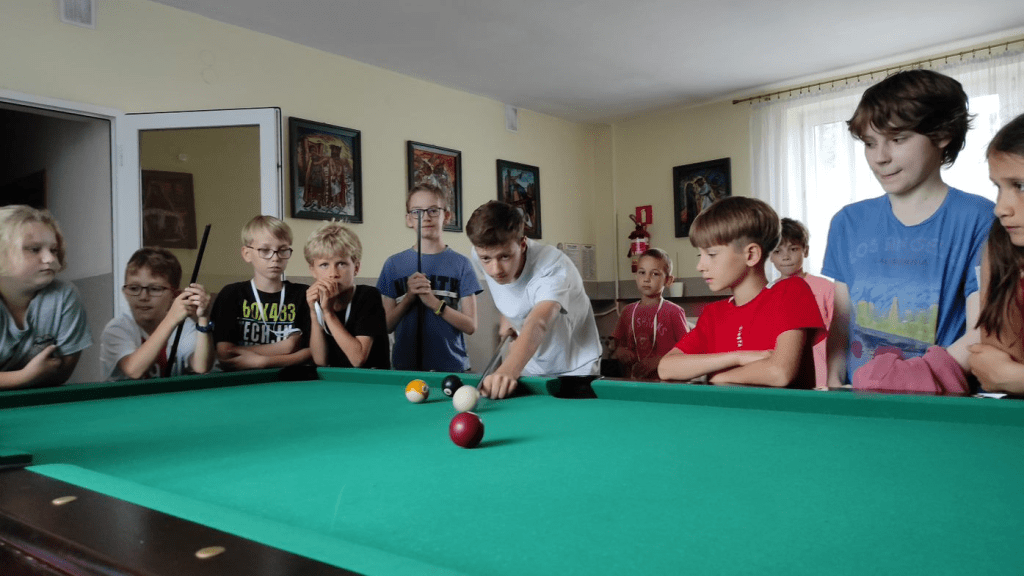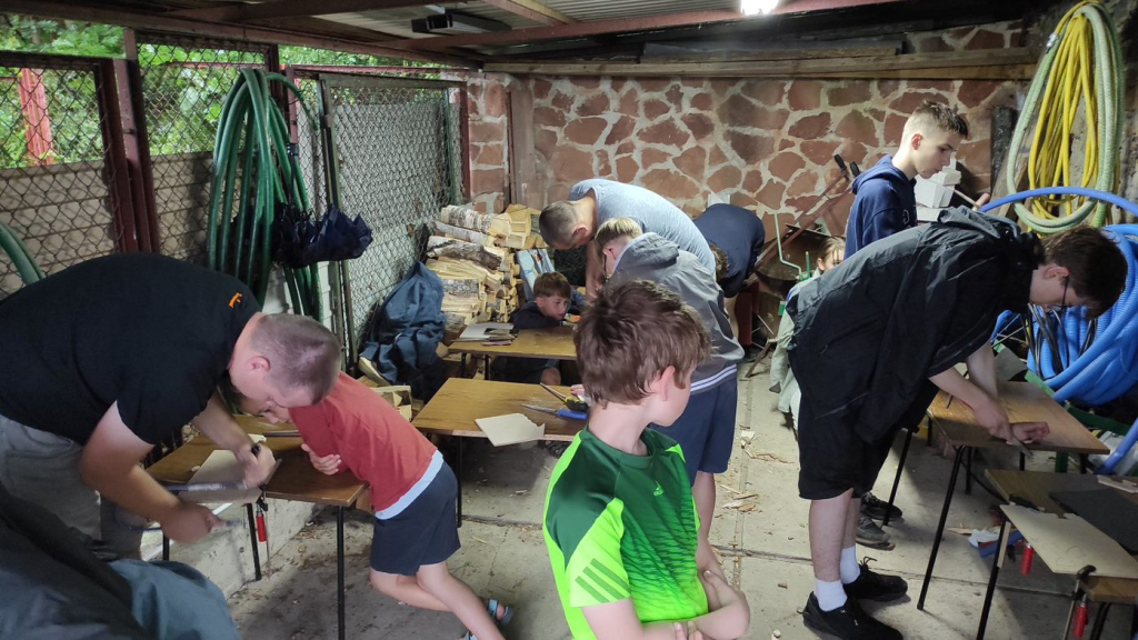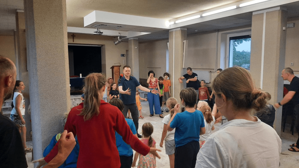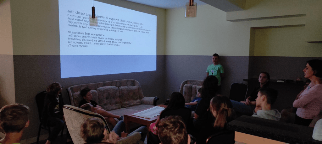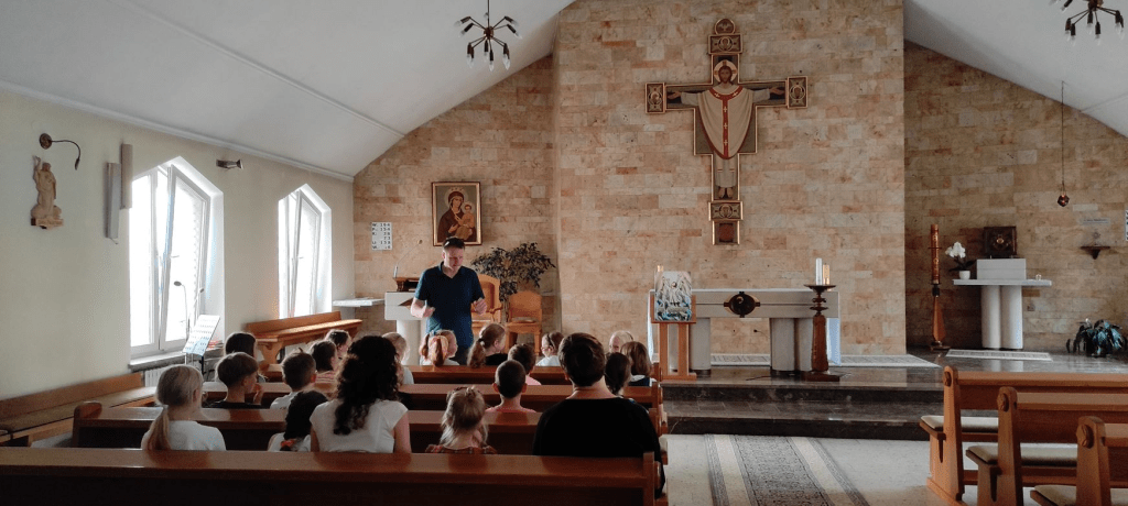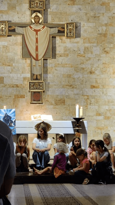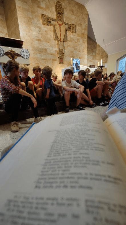 Poznawaliśmy kolejną część Mszy Świętej – Gloria. Grupa dzieci szkolnych w ramach swojej katechezy wyszła na wyprawę otwartych oczu, podczas której podziwiała piękno stworzenia. Na modlitwie wieczornej uwielbialiśmy Boga w Jego dziełach. Z powodu deszczowej pogody nasz pogodny wieczór odbył się w budynku. Zanim nastała cisza nocna dzieci próbowały swoich sił w różnych grach.