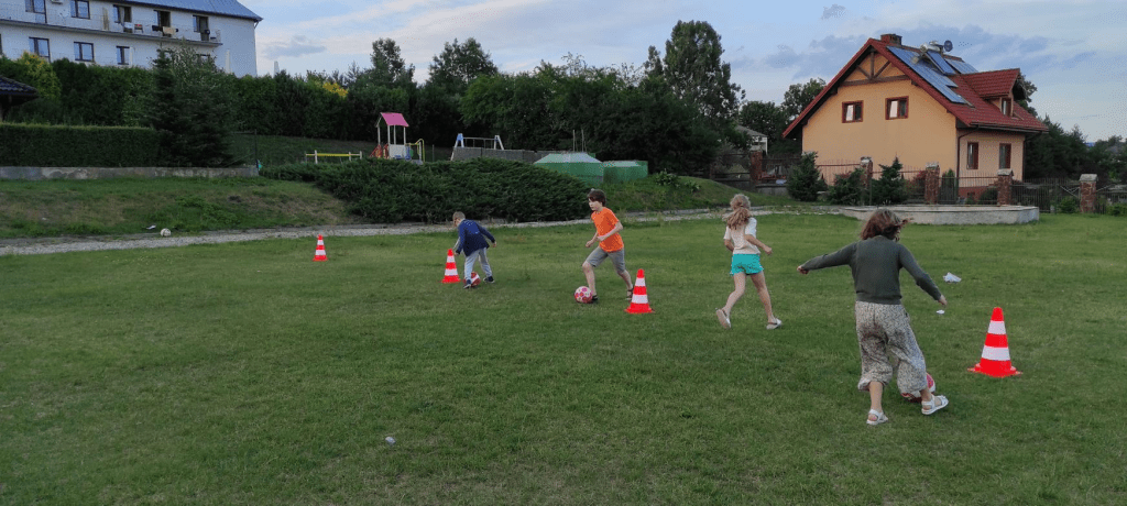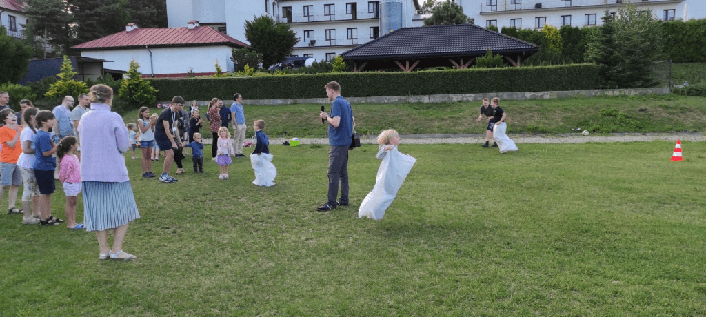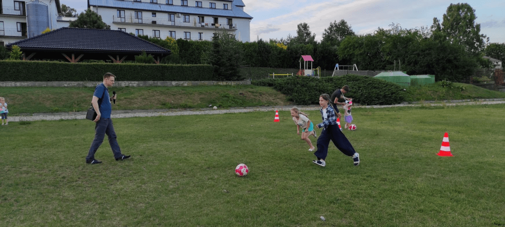 Podczas pogodnego wieczoru sprawdzaliśmy swoją kondycję sportową, pokonując dystanse w stylu piłkarskim, rolniczym i kelnerskim.