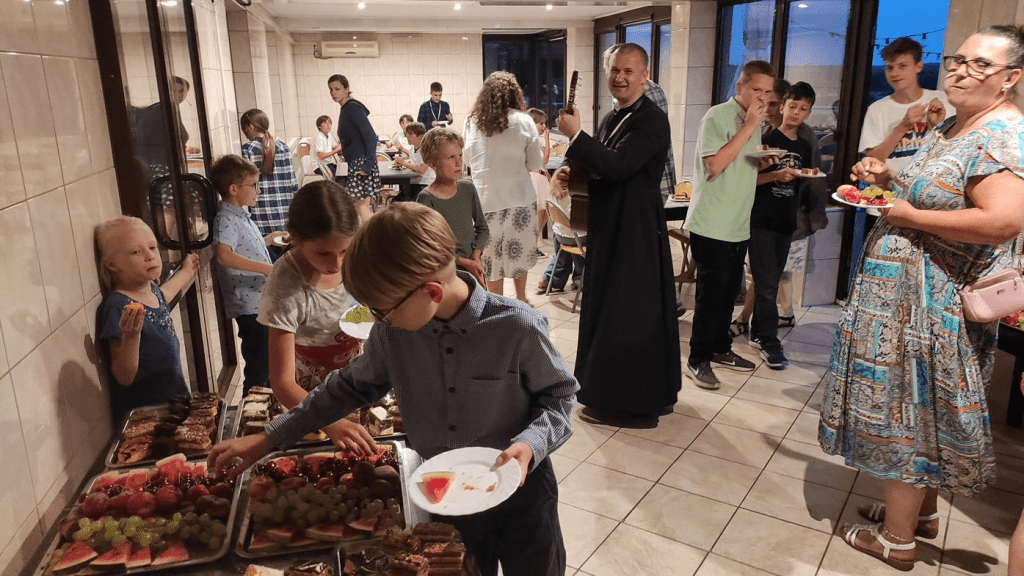 Przeżywaliśmy ostatni pełny dzień rekolekcji. Odbyły się ostatnie katechezy i ostatnie warsztaty. Po uroczystej mszy świętej po południu rozpoczęła się agapa: były podziękowania, quiz wiedzy z katechez i oczywiście specjalny poczęstunek.